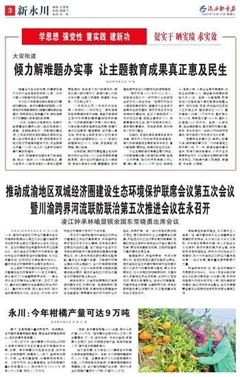 推动成渝地区双城经济圈建设生态环境保护联席会议第五次会议暨川渝跨界河流联防联治第五次推进会议在永召开