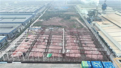 本报讯(渝西都市报记者 陈仕川 文/图)12月11日,位于永川国家高新区港桥产业园的泰石节能(重庆)有限公司第二期项目建设现场,工程车辆正在吊运钢梁,施工人员进行刷漆等作业。