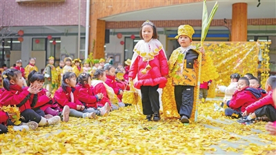 12月7日,遂宁市船山区顺城街幼儿园开展了落叶节活动。孩子们用落叶、树枝做成形态各异的服装、配饰,进行了一场饶有趣味的落叶“时装秀”表演。