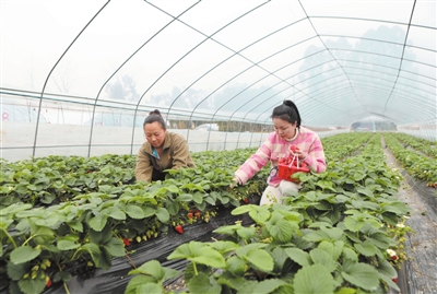 目前正是草莓的成熟季节,南大街街道黄瓜山片区有代家草莓园、苏草莓、QQ农场阳草莓等7个草莓种植大户,占地200余亩,共种植20余万株草莓。