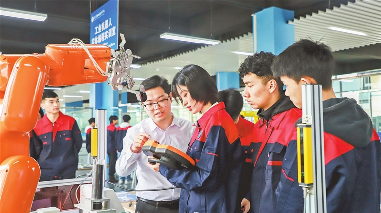 重庆智能工程职业学院学生在开展机器 人编程实训。 (受访单位供图)
