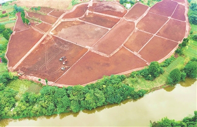 近日,在眉山市仁寿县青岗乡盘龙村,几台挖掘机正在进行高标准农田建设。