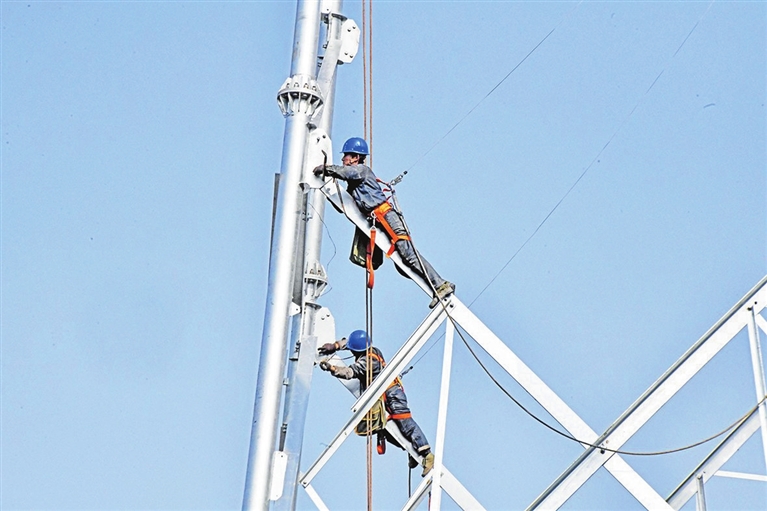 “我们先在地面将一块块塔材按照设计图纸进行安装,安装完成一段后再用吊车进行组装,这样可以加快组塔进度,减少安全风险。”迁改现场工作负责人满益茂介绍,为了保证迁改工程安全进行,合川供电公司细化施工方案和预控措施,运用“双向积分”机制推进无违章现场创建,全面把控机械伤害、高空坠落伤害等安全风险点,有序推进项目实施。