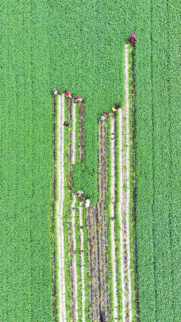 眼下,桂林蔬菜基地菜农们正在抢抓晴好天气采收萝卜,呈现出一幅人勤地生金,沃野绘“丰”景的乡村振兴画卷。
