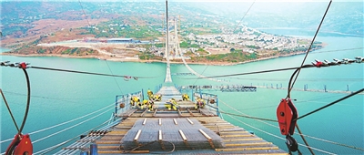 四川日报讯(刘格格 四川日报全媒体记者 王眉灵)记者近日从蜀道集团获悉,宜宾至攀枝花沿江高速控制性工程之一——卡哈洛金沙江大桥成功完成首根主缆索股架设。