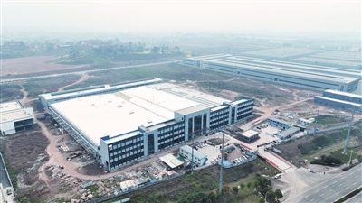 3月27日,在永川高新区凤凰湖产业园,重庆太平洋精工科技有限公司新能源汽车零部件及轻量化铝合金材料一期项目建设现场,一期厂房主体建设完成,施工人员正在进行厂房内部水电气施工。