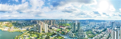 3月21日,航拍镜头下的大足城区景美宜居、生机勃勃。据悉,大足区今年将全力建设美丽重庆先行区,坚持生态优先、绿色发展,一体推进治水、治气、治土、治废、治塑、治山、治岸、治城、治乡,构建城乡整体风貌大美格局,绘就天蓝地绿水清的生态画卷。 新渝报记者 黄 舒 摄