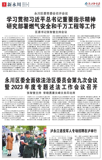 永川区委全面依法治区委员会第九次会议 暨2023年度专题述法工作会议召开