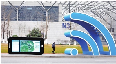 艺术公交车站“新世界”位于悦来大道——博览中心广场站,车站以“WIFI”符号作为创作元素,将其平面化的图像立体化后构筑成一个围合的空间,两侧广告灯箱同样也采用一体化设计,将手机等电子设备的平面化符号转换为立体的造型,中间穿插着可爱的剪影小人,以一种日常的生活状态,聚集在WIFI的周围。