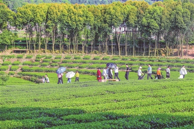 近日,在泸州市叙永县叙永镇的红岩村茶山,满山的绿芽犹如翡翠般点缀在山野间,吸引不少游客前来踏青游玩,感受大自然的魅力,在茶香中品味美好生活。