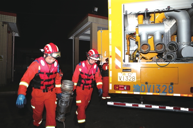本报讯(渝西都市报记者 陈仕川 文/图)4月26日晚,永川区住房和城乡建委组织属地镇街、专业救援队伍、应急抢险单位及小区物业等单位开展城市排水防涝应急演练。
