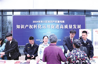 近日,永川区检察院联合区市场监管局、区知识产权局、区公安局、区法院等部门在华茂中心广场开展“知识产权转化运用促进高质量发展”普法宣传活动,向群众介绍知识产权保护系列工作,并发放宣传手册。渝西都市报通讯员 杨 悦 摄