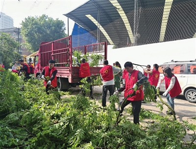 及时响应、快速报到、合力处置。4月22日,用于修剪树枝的起重机开进了化工厂老旧小区,对隐患枝条逐一进行修剪。4月26日,中山路街道与11个结对单位年轻力壮的在职党员早早来到现场,和卧龙凼社区部分党员、网格员一起合力清理树枝、清扫院落。