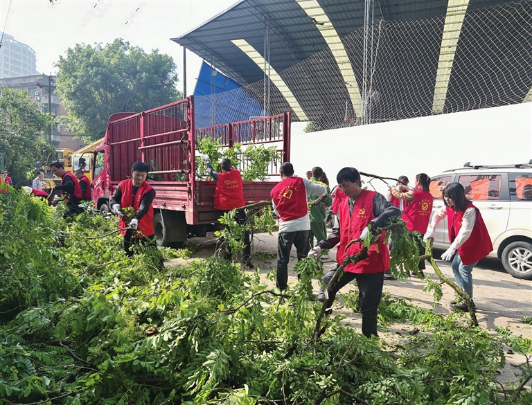 “化工厂老旧小区绝大多数住的都是中老年人,他们的收入不高,如果要给有隐患的195株树木修枝,起重机费用、专业修枝工人工资和清运枝条运费都是一笔不小的数目。”中山路街道相关负责人说,经过分析研判,为有效解决居民的烦心事、揪心事,只能联合多方合力。那就是通过发挥在职党员参与基层治理、服务居民的先锋模范作用,与和中山路街道结对的区委组织部、区委党校、区民政局、区生态环境局、区审计局、区信访办、区侨联、区广播电视大学、卧龙初级中学校、区妇幼保健院、中国电信股份有限公司永川分公司等11个单位群策群力,召开社区城市基层党建联席会议,商定共同出资出力解决问题,并利用卧龙凼社区党委4月“主题党日”活动开展在职党员回小区修枝清患志愿服务活动,打通基层治理“最后100米”。