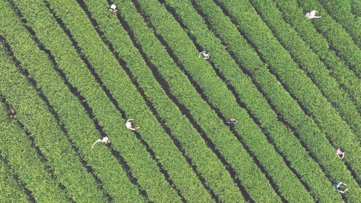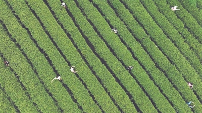 近日,巴南区二圣镇白象山茶园里,梯田茶山层层叠叠,连绵起伏的碧波绿浪蜿蜒至天边,景色如画,美不胜收。茶农在茶园中忙着采茶,微风吹来,茶香四溢。