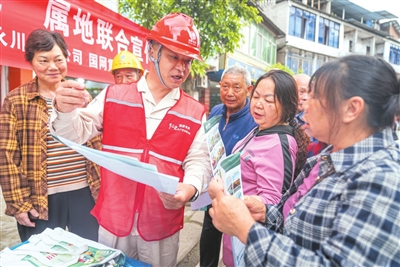 联合行动队伍利用村镇赶集时机,在人流较大的地方摆摊设点,向来往群众发放了有关安全用电、森林防火、空飘治理、电力通道保护等内容的宣传手册200余份,现场解答了群众咨询的家庭电力线路老化如何处置、高压线下可否种植农作物等问题15条。