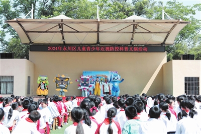 4月26日,永川区青峰镇卫生院邀请永川爱尔阳光眼科医院医务人员走进青峰小学,开展2024年健康素养科普进基层暨儿童青少年近视防控科普义演活动。