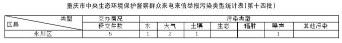 5月23日,中央第六生态环境保护督察组向重庆市交办第十五批群众信访举报件117件,涉及永川区5件(重点交办件0件),其中来电举报件3件,来信举报件2件。