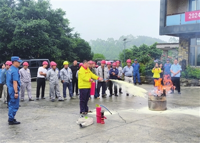 图为企业员工在应急救援人员的指导下尝试扑灭火势。渝西都市报记者 刘 灿 摄