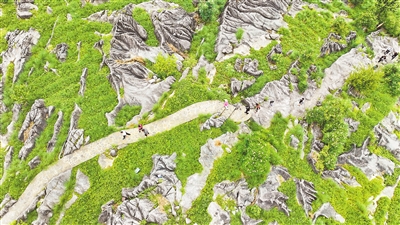 图为6月17日,酉阳县板溪镇叠石花谷景区,游人在游玩。该景区由岩石裸露率超过70%的重度石漠化荒山改造而来。
