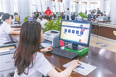 ▲6月13日,江北区行政服务中心工作人员为成都的申请人异地办理营业执照。