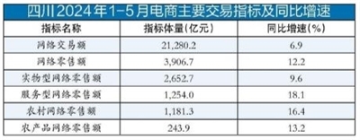 成都日报讯(成都日报锦观新闻记者 孟 浩) 6月17日,记者从四川省商务厅获悉,今年1至5月,四川实现网络交易额21280.2亿元,同比增长6.9%。网络零售额3906.7亿元,同比增长12.2%。其中,实物型网络零售额2652.7亿元,同比增长9.6%;服务型网络零售额1254.0亿元,同比增长18.1%。农村网络零售额1181.3亿元,同比增长16.4%。农产品网络零售额243.9亿元,同比增长13.2%。成都实现网络零售额2712.7亿元,其中,实物型网络零售额1898.5亿元,服务型网络零售额814.2亿元。