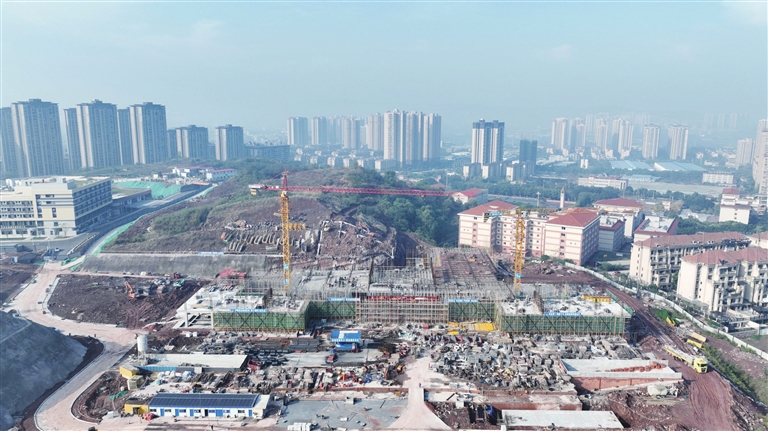 据了解,重庆城市职业学院新校区工程项目用地面积586亩,总规划建筑面积32.65万平方米,其中一期工程约12万平方米,包括图文信息科技中心、龙翔园学生宿舍、学生食堂等单体建筑项目和相关土石方、道路管网、绿化景观等配套工程,一期工程将于2025年9月建成投用。
