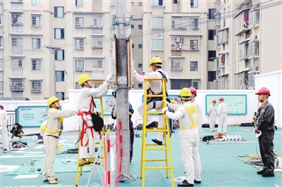 竞赛分为理论知识和技能实操两部分。其中,技能实操比赛采取团体赛方式,杆上作业3名人员完成横担安装、拉线制作、架空导线施放、下户线和表计安装等农村电网运维服务工作。整个竞赛紧张激烈,各组参赛选手沉着应战、认真操作,熟练完成作业程序,表现出良好的职业素质和过硬的职业水平。