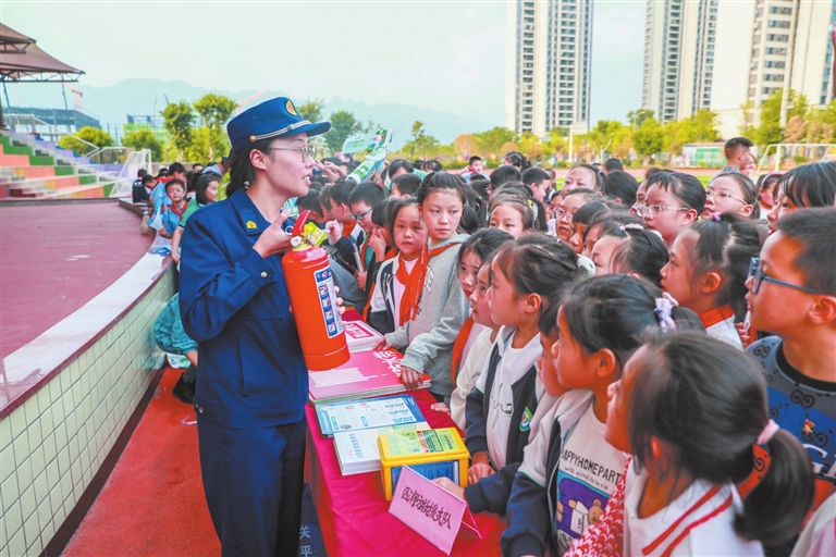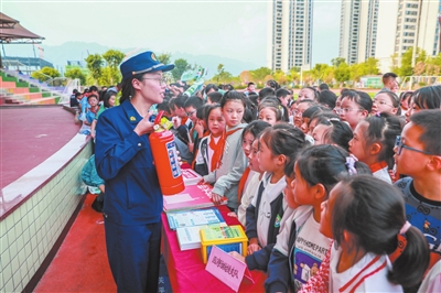 随后,骁骑队员驾驶大功率摩托车,为孩子们展示渝警骁骑精湛的摩托车勤务技能,特警为小学生展示了警体拳,整齐划一的动作赢得孩子们阵阵掌声和欢呼声。区消防救援局消防队员进行的消防演练,告诫孩子们要高度认识火灾的危险性,做到处处防火、事事防火、时时防火。