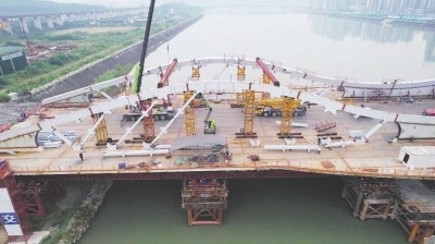 “青石路涪江大桥项目桥梁下部结构、主桥钢箱梁顶推、主拱拱肋安装等全部完成。现正进行主桥刚性吊杆安装、引桥现浇箱梁施工。”绵阳青石路涪江大桥项目相关负责人柯所安介绍。
