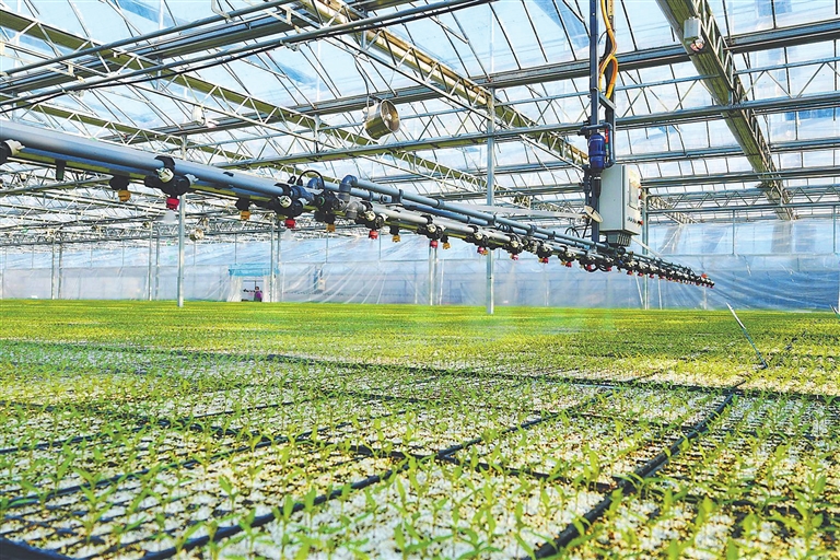 11月25日,北碚区兴隆镇嘉禾智慧种苗工厂内,自动喷淋系统正在为种苗精准灌溉。这座“植物工厂”运用人工智能技术,实现了从基质处理、高速播种到环境调控等方面的全流程自动化。其年产优质种苗可达1.5亿株,通过智能控制温、光、水、肥,成功突破季节限制,保障市场供应。