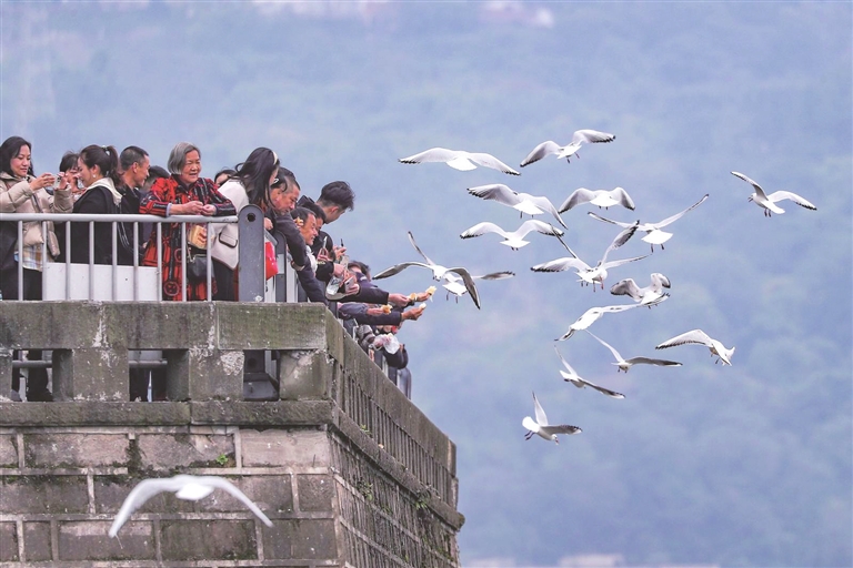 不少市民闻讯而来,或驻足观赏,或举起手机记录下这动人画面。孩子们在家长的陪伴下,小心翼翼地投喂鸟食,与红嘴鸥亲密互动;志愿者在岸边轻声引导,提醒大家文明观鸟、共同守护这片鸟类栖息地。人鸟和谐的画面,成为这个初冬时节温暖的风景。