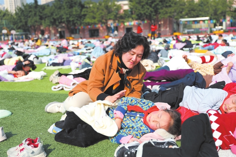 近日,兴龙湖小学4000余名师生、家长一起来到操场集体晒太阳,在初冬暖阳中舒展身心。这一举措是学校响应国家青少年体质强健计划、深化“健康第一”教育理念的又一生动实践。渝西都市报通讯员 敖民极 摄
