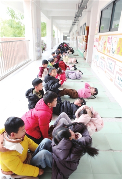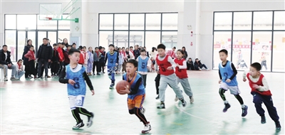 1月7日,永川区红旗小学文昌路校区,2000余名学生在足球场、篮球场、教学楼连廊等区域开展大课间活动。