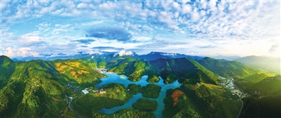 5月21日,万盛经开区青年镇板辽村,湖水碧绿清澈,景色美不胜收。