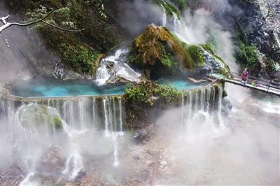 螺髻九十九里温泉瀑布,享有世界最大温泉瀑布、世界仅有的温泉群岛、世界仅有的悬崖温泉,有“中国最美温泉旅游景区”的美誉。黄伟寿 摄