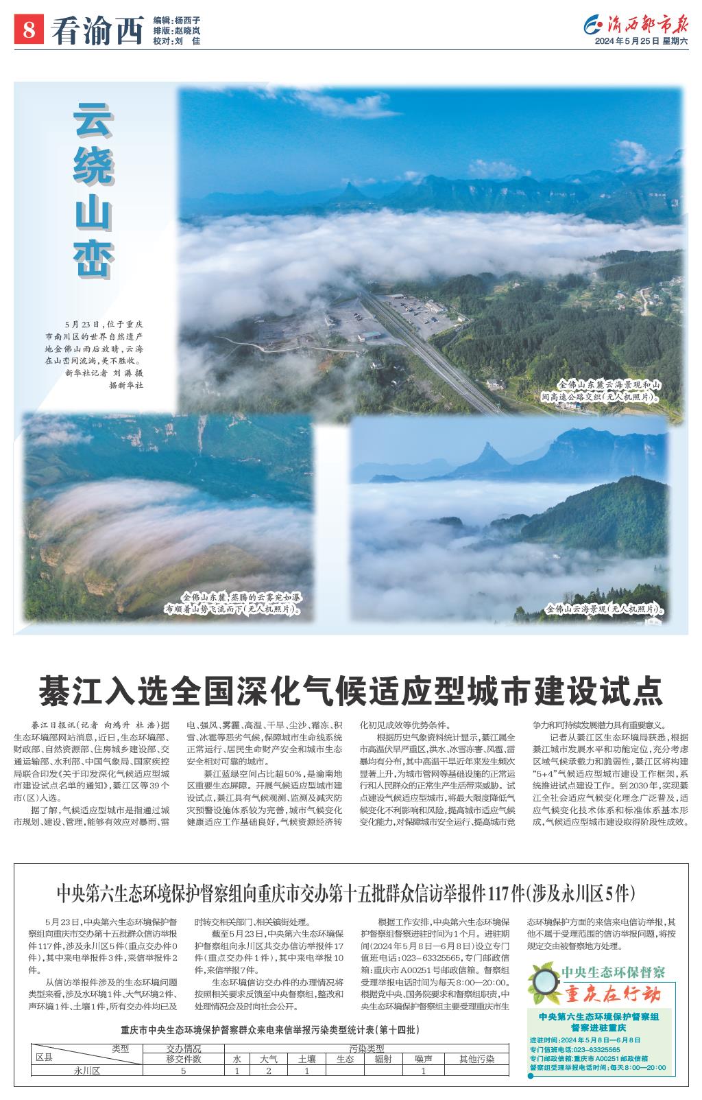 中央第六生态环境保护督察组向重庆市交办第十五批群众信访举报件117件(涉及永川区5件)
