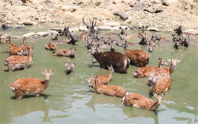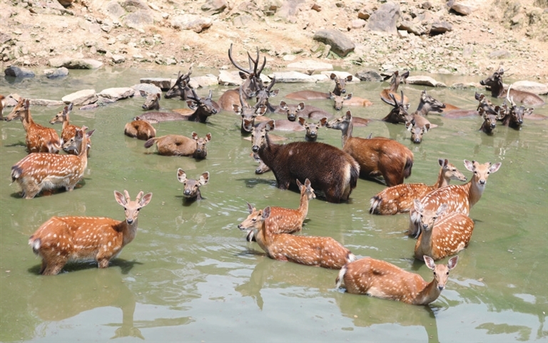 据了解,这是该景区今年入夏以来动物们吃上的第一口西瓜。同时,该景区还通过喷雾设施、水池、遮阳网、空调、电风扇等设施给不同的动物场馆散热降温,让野生动物们安全度夏。