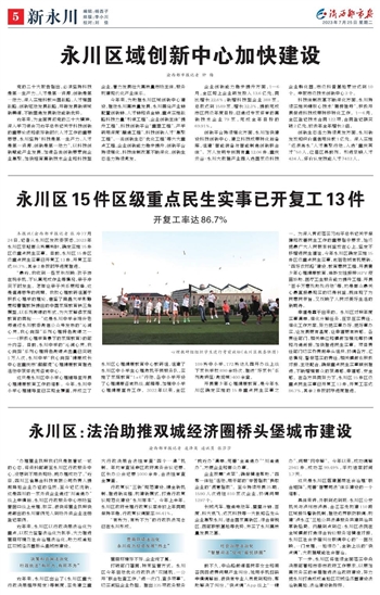 本报讯(渝西都市报记者 张 玲)7月24日,记者从永川区发改委获悉,2023年永川区紧贴群众所需所盼,确定实施15件区级重点民生实事。目前,永川区15件区级重点民生实事已开复工13件,开复工率达86.7%,其余2件按时序进度推进。