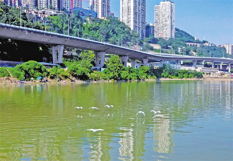 渝中报讯(记者 向 勇)近日,一批美丽的客人——成群的白鹭栖息在位于渝中区的黄沙溪滨水步道边,为悠然的滨江长廊增添了一道亮丽色彩。