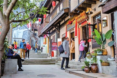 山城巷的“微更新”既原汁原味展现了山城巷的风貌,又在环境美化和公共设施建设上升级,将山城的街头巷尾打造为高品位、小尺度都市文化聚落,实现老街巷的焕新。如今,山城巷里精品酒店民宿、特色餐饮、文化艺术、文创零售构成了四大核心业态,各自占比约28%、36%、7%、29%。背包十年、SOLOIST咖啡、小重楼、喵小院、山城·时光里图书馆、在场空间、外婆桥餐厅、桥山宴餐厅、瓦座国风餐酒吧、山城坝坝茶等店铺引流效果明显。目前,物业出租率达到70%,日均营业收入约5万元,节假日高峰期日均营业收入约8万元。