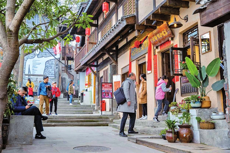 改造后如何运营才能让山城巷长久红火,成为市民、游客必打卡之地?据了解,山城巷更新项目成立了“巷委会”,形成共建共融共生的模式,用人之聚合、思维碰撞,促进项目持续性运营。同时,还采取自营和联营的多种经营并行模式,如实景沉浸式体验空间——荒野公园,用书籍拓宽城市边界——山城·时光里图书馆等。