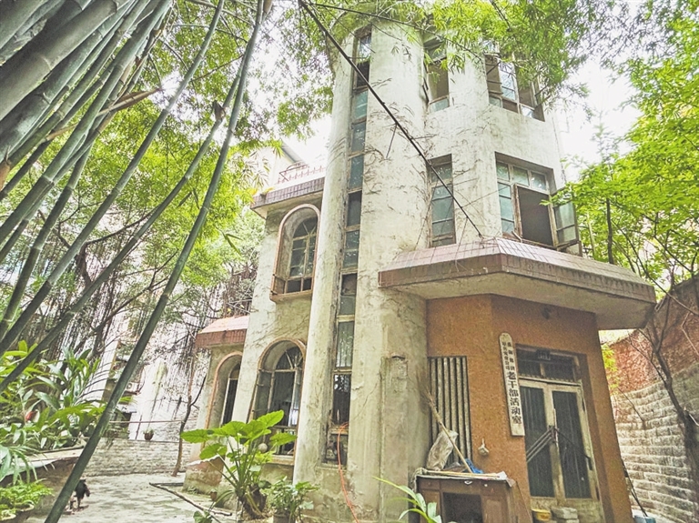 三钢二厂紧靠长安厂,曾是国营钢铁厂,以前有独立的学校、球场、超市和员工活动室等。上世纪末期,三钢厂破产后,老厂区和宿舍逐渐废弃破败。如今行走在这里,时光的痕迹还镌刻在一砖一瓦间:铁门上写有“单工宿舍”字样,巷子里的老式水表锈迹斑斑,墙上还有和三钢厂有关的老照片。转角处,一栋中西结合风格的小楼,掩映在两株高大的芭蕉树中。