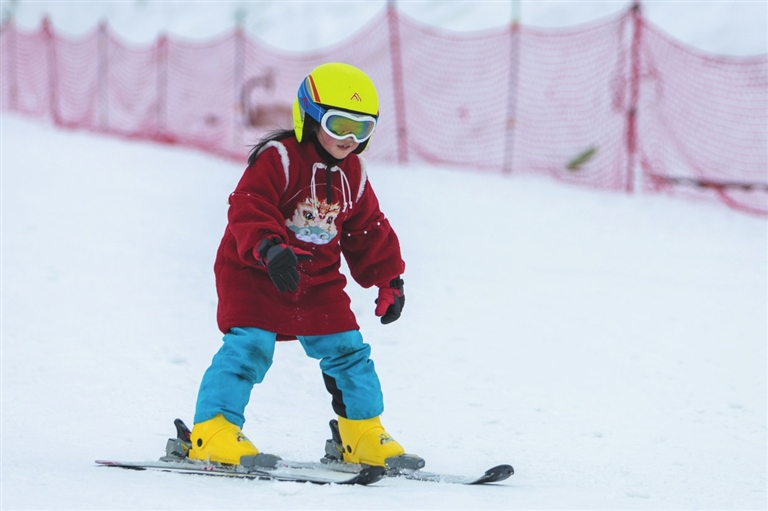 图①:1月26日,小朋友在重庆市石柱土家族自治县的冷水国际滑雪场滑雪。