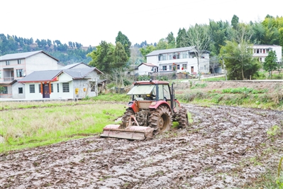 2月22日,大足区中敖镇麻杨村二组,一台犁田机正在翻地,为春播春种做准备。