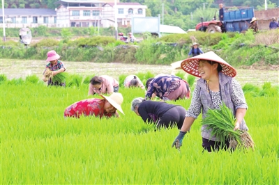 4月23日,在遂宁市安居区三家镇三门村,当地抢抓晴好天气,组织村民完成2000余亩水稻插秧。三家镇今年预计种植水稻5.2万亩,通过不断优化农业产业结构,为打造新时代更高水平“天府粮仓”提供更多优质粮、放心粮。
