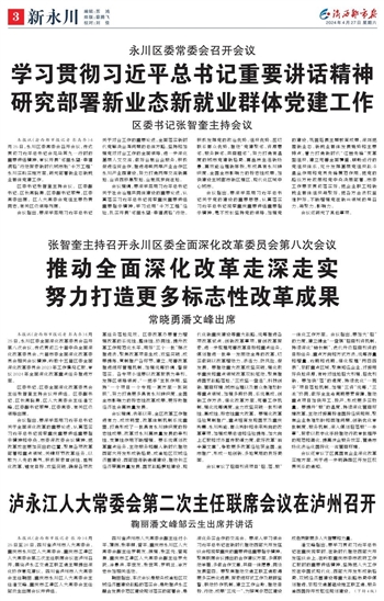 以实干实绩推动总书记重要讲话和指示精神在永川落地生根见行见效