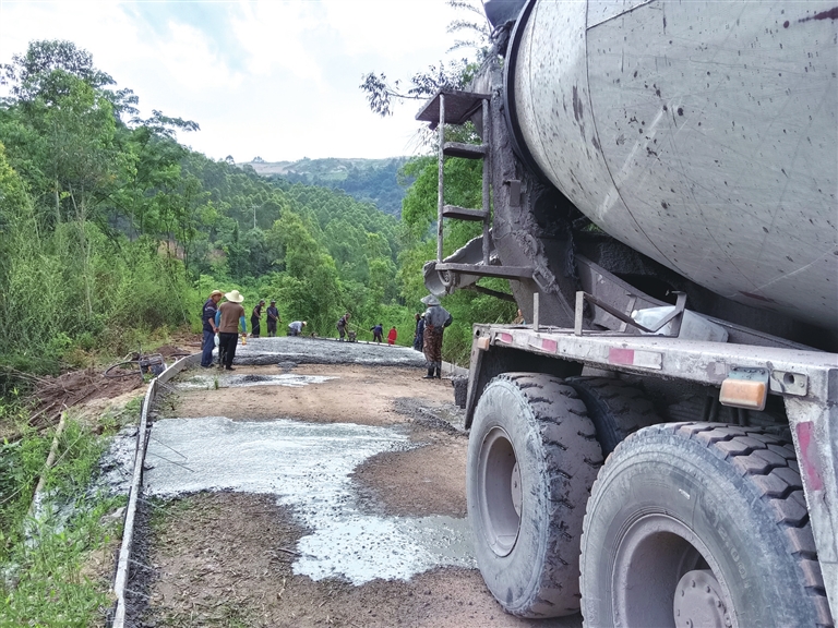 5月20日,永川区卫星湖街道石龟寺村石友路建设现场,工人们正抢抓晴好天气铺设路面。