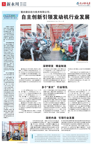 发展新质生产力,核心在创新。磐谷最初是从进口柴油发电机组整机开始做起,代理国外大品牌产品到国内,并为用户提供安装、配套工程及维保等服务,之后采购大件制造整套发电机组。随着市场需求和用户需求的不断变化,柴油发动机作为占据一台发电机组成本60%—75%的核心关键零部件,磐谷逐渐意识到了单纯依靠进口产品已经不能满足自己发展和市场需求,必须走出一条属于自己的道路,于是开始研发自己的柴油发动机并逐渐成为行业的标杆。我们期待更多像磐谷一样的企业通过创新走向世界,成为永川亮丽的名片。