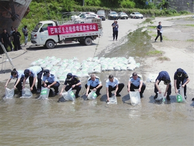 据介绍,本次活动由巴南区农业农村委牵头,巴南区检察院、区公安分局、长航公安重庆分局、巴南海事处等部门共同参加。此次增殖放流鱼苗为区内5起非法捕捞水产品案涉案当事人为承担相应的生态修复义务自愿购买,涉案生态赔偿修复资金4.86万元,共放流胭脂鱼、岩原鲤等珍稀鱼类品种苗种3万尾。